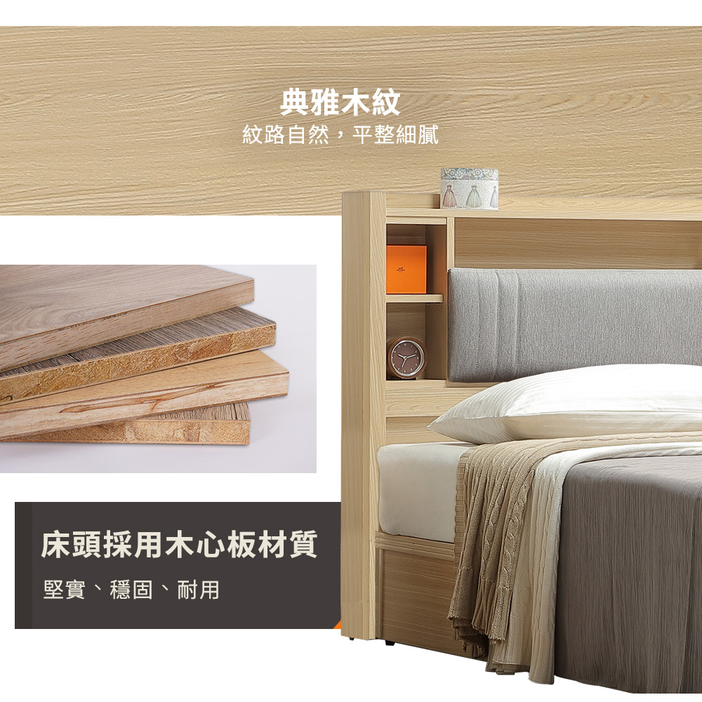 ◆木心板材質,堅實、穩固、耐用◆典雅木紋,演繹大器沉穩◆貓抓皮床頭,大幅增加靠感舒適度◆床頭安全插座,充電超方便◆抽屜床台,六抽屜分類收納更便利◆免組裝,專人配送到府整組商品:床頭片 x 1 + 抽屜床台x 1(不含床墊)尺寸:寬 152 x 深 202 x 高 100 公分適用床墊規格:5 x 6.2 尺材質:高級木心板+三分夾板顏色:杉木色產地:台灣誤差值:因人工丈量,尺寸±5%內為正常範圍