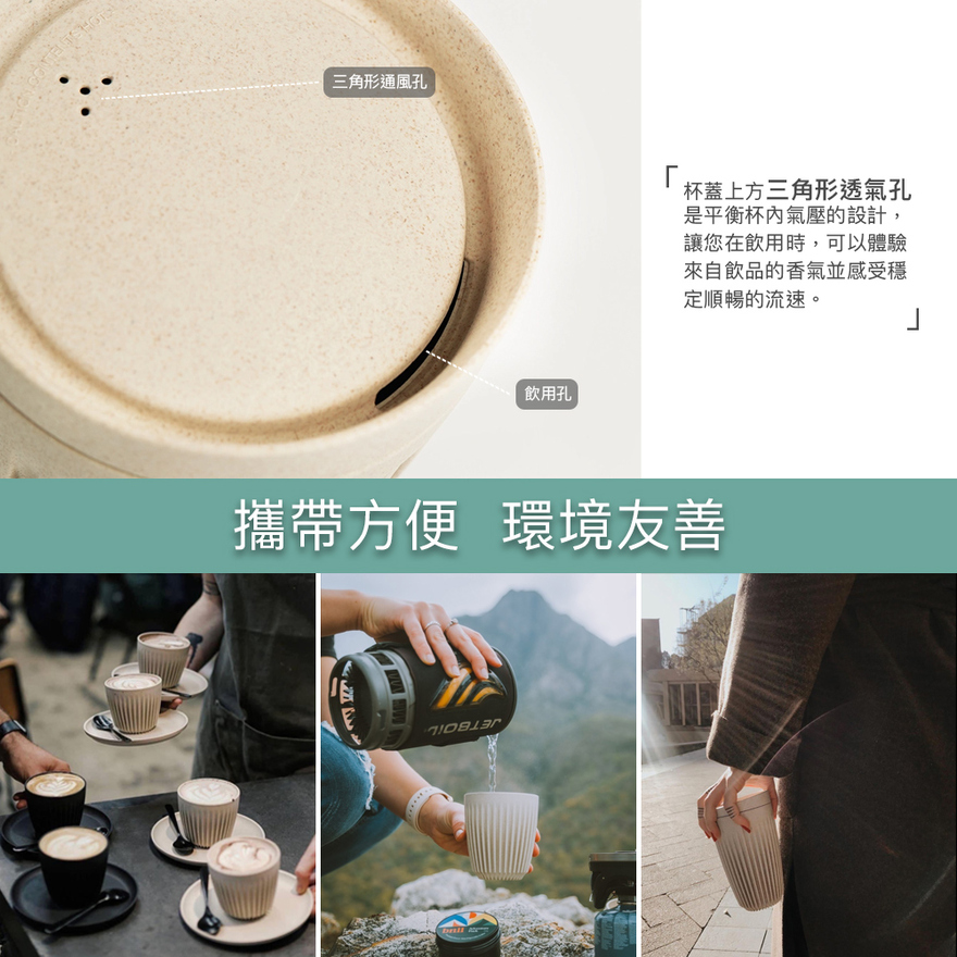 ✔️杯蓋 50%上廢棄咖啡豆殼、生物聚合物(biopolymer)、聚丙烯(polypropylene)、矽膠圈