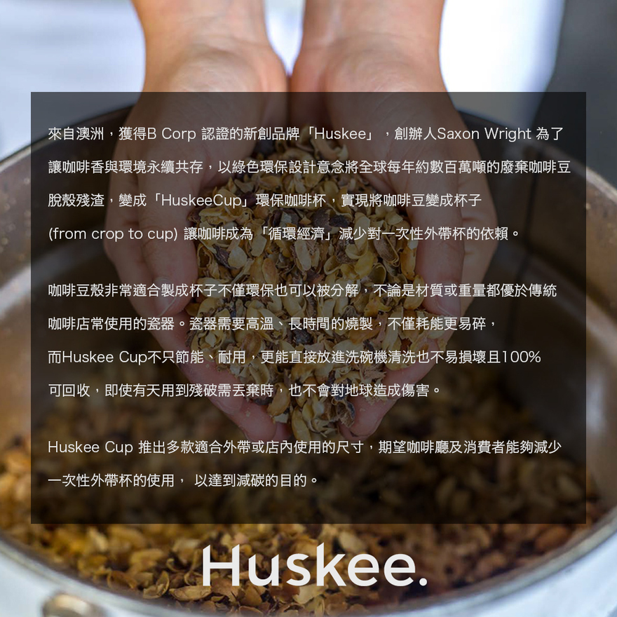 來自澳洲,獲得B Corp 認證的新創品牌 「Huskee」創辦人Saxon Wright 為了讓咖啡香與環境永續共存,以綠色環保設計意念將全球每年約數百萬噸的廢棄咖啡豆脫殼殘渣,變成 「HuskeeCup」環保咖啡杯,實現將咖啡豆變成杯子(from crop to cup)讓咖啡成為「循環經濟」減少對一次性外帶杯的依賴。咖啡豆殼非常適合製成杯子不僅環保也可以被分解,不論是材質或重量都優於傅統咖啡店常使用的瓷器。瓷器需要高溫、長時間的燒製,不僅耗能更易碎,而Huskee Cup不只節能、耐用,更能直接放進洗碗機清洗也不易損壞且100%可回收,即使有天用到殘破需丟棄時,也不會對地球造成傷害。Huskee Cup 推出多款適合外带或店內使用的尺寸,期望咖啡廳及消費者能夠減少一次性外帶杯的使用,以達到減碳的目的。【商品特色】✔️ 美國FDA認證、100%安全無毒✔️ 廢棄咖啡殼再生製造✔️ 杯身坑紋耐用設計, 舒適的握感✔️ 隔熱防滑,持久的保溫效果✔️ 可堆疊好收納✔️ 可進洗碗機清洗✔️ 適用於咖啡、飲品、茶….等✔️ 攜帶方便