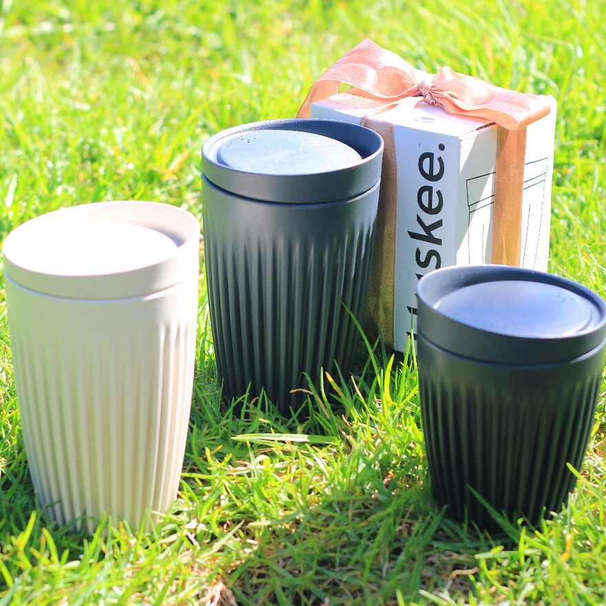 HuskeeCup是由一種獨特的生物聚合物(biopolymer)製成的其中包含聚丙烯(polypropylene)及高達50%上的廢棄咖啡。