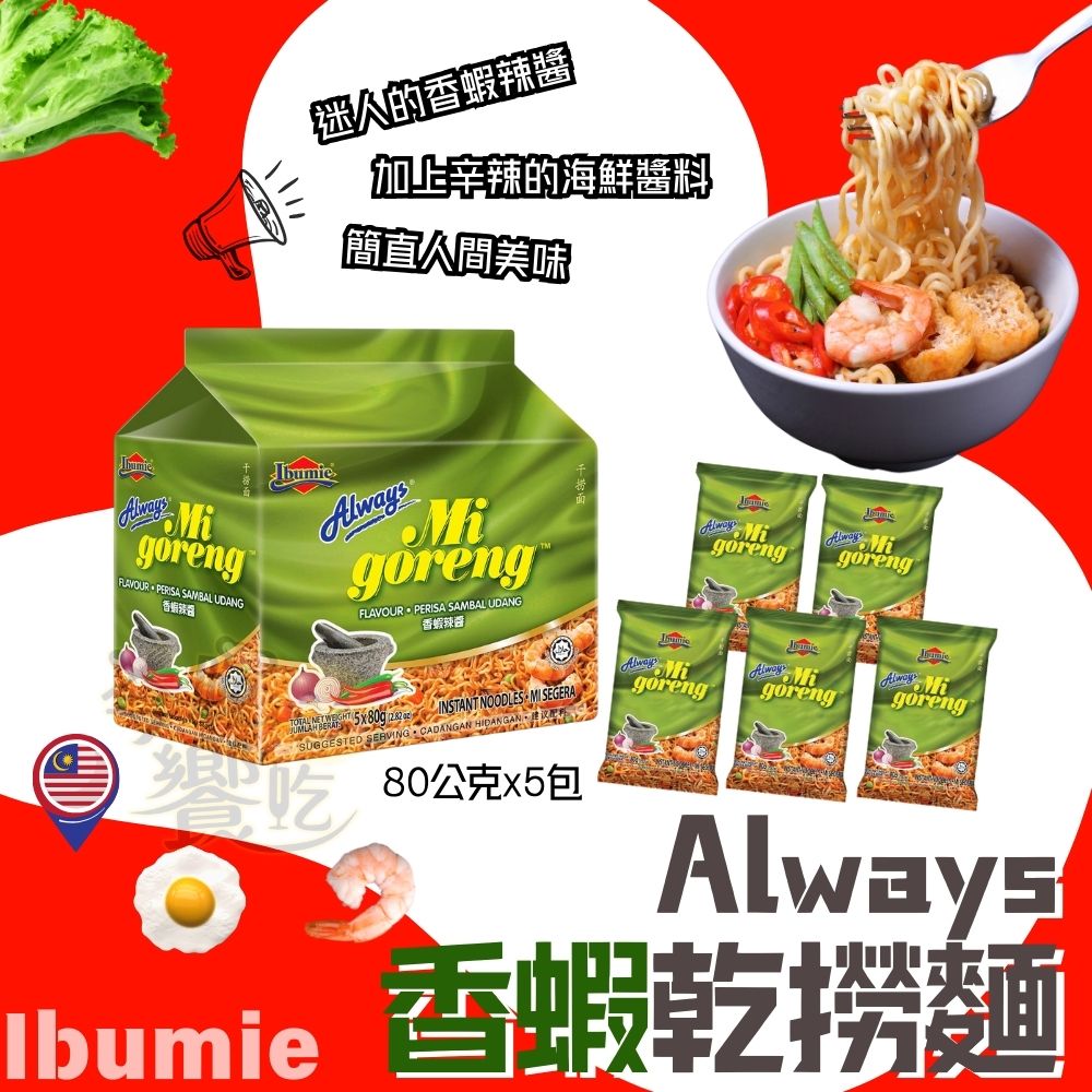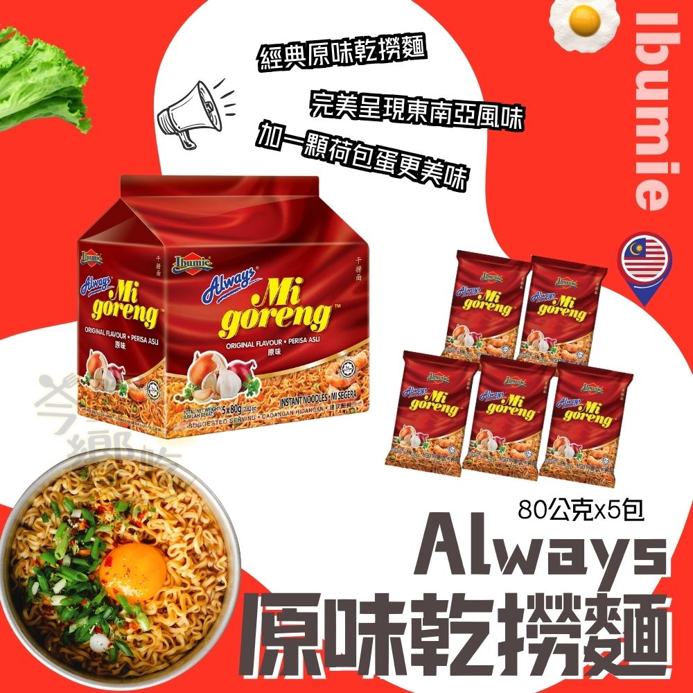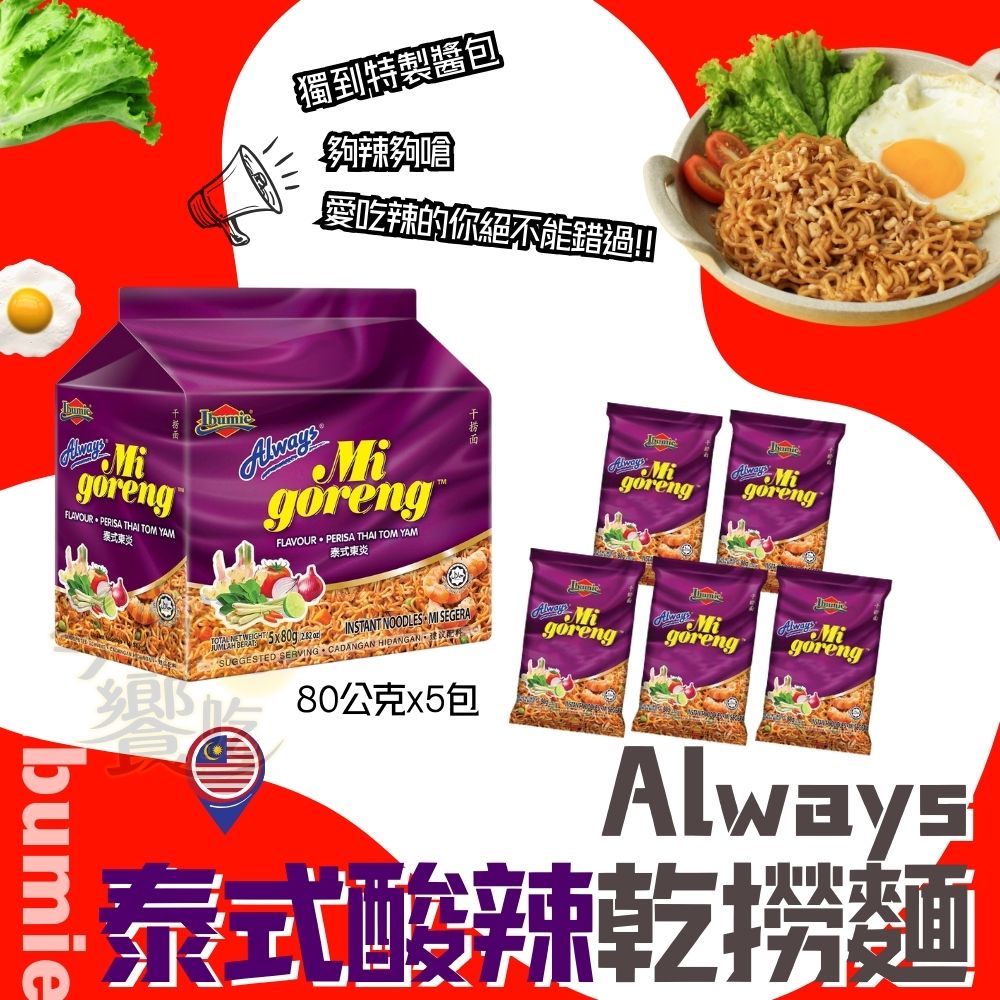 超夯炒泡麵 always 乾撈麵經濟包(80G*5p)馬來西亞原裝進口 (原味/香蝦辣醬/泰式酸辣) 口味任選 [3包免運]