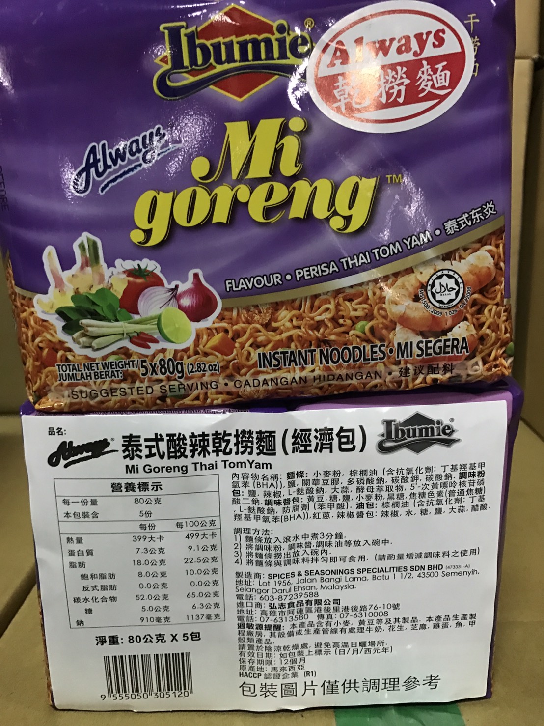 道地東南亞風味 超夯炒泡麵 always 乾撈麵經濟包(80G*5p) 馬來西亞原裝進口 (原味/香蝦辣醬/泰式酸辣) 口味任選 [8袋免運]