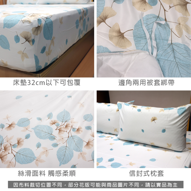 雙人5尺-床包x1件(152x188cm)、薄枕套x2個(48x75cm)、兩用被x1件(182x212cm)