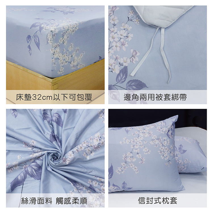 加大6尺-床包x1件(182x188cm)、薄枕套x2個(48x75cm)、兩用被x1件(182x212cm)