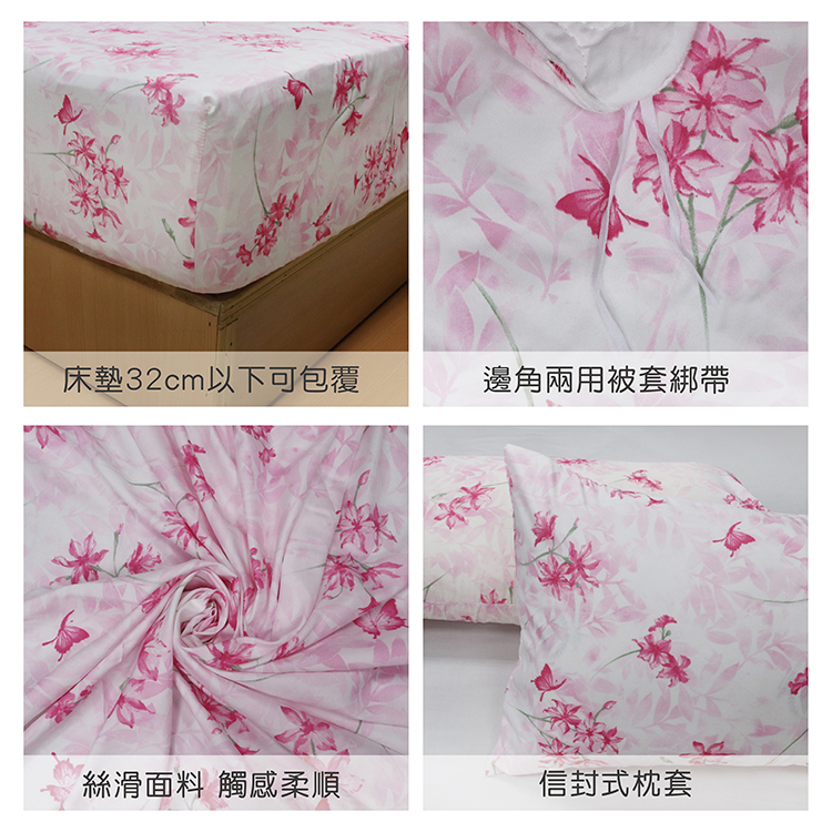 Indian新科技天絲吸濕排汗雙人四件式床包兩用被組-海棠花語