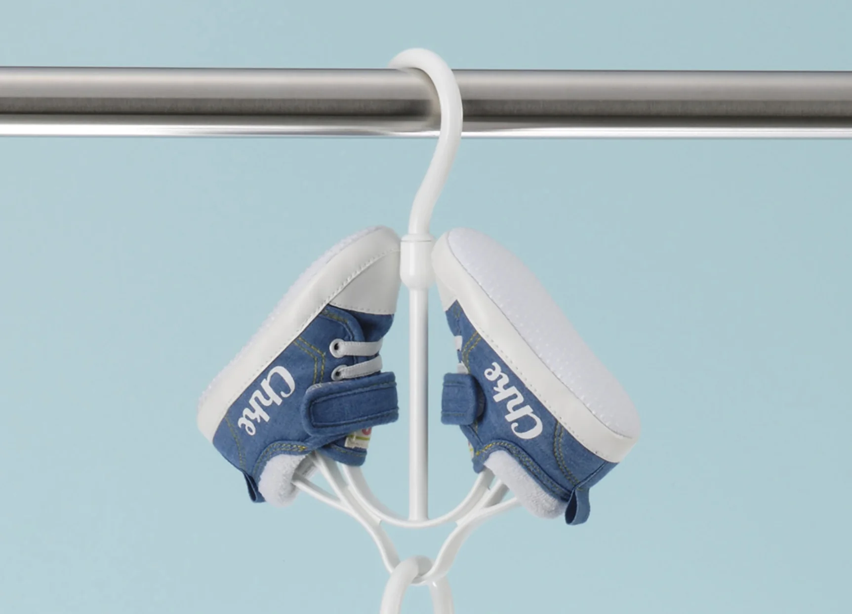 晾曬: 將清潔後的鞋子掛在鞋架上,確保鞋子之間有足夠的間距以促進空氣流通,加速乾燥。
