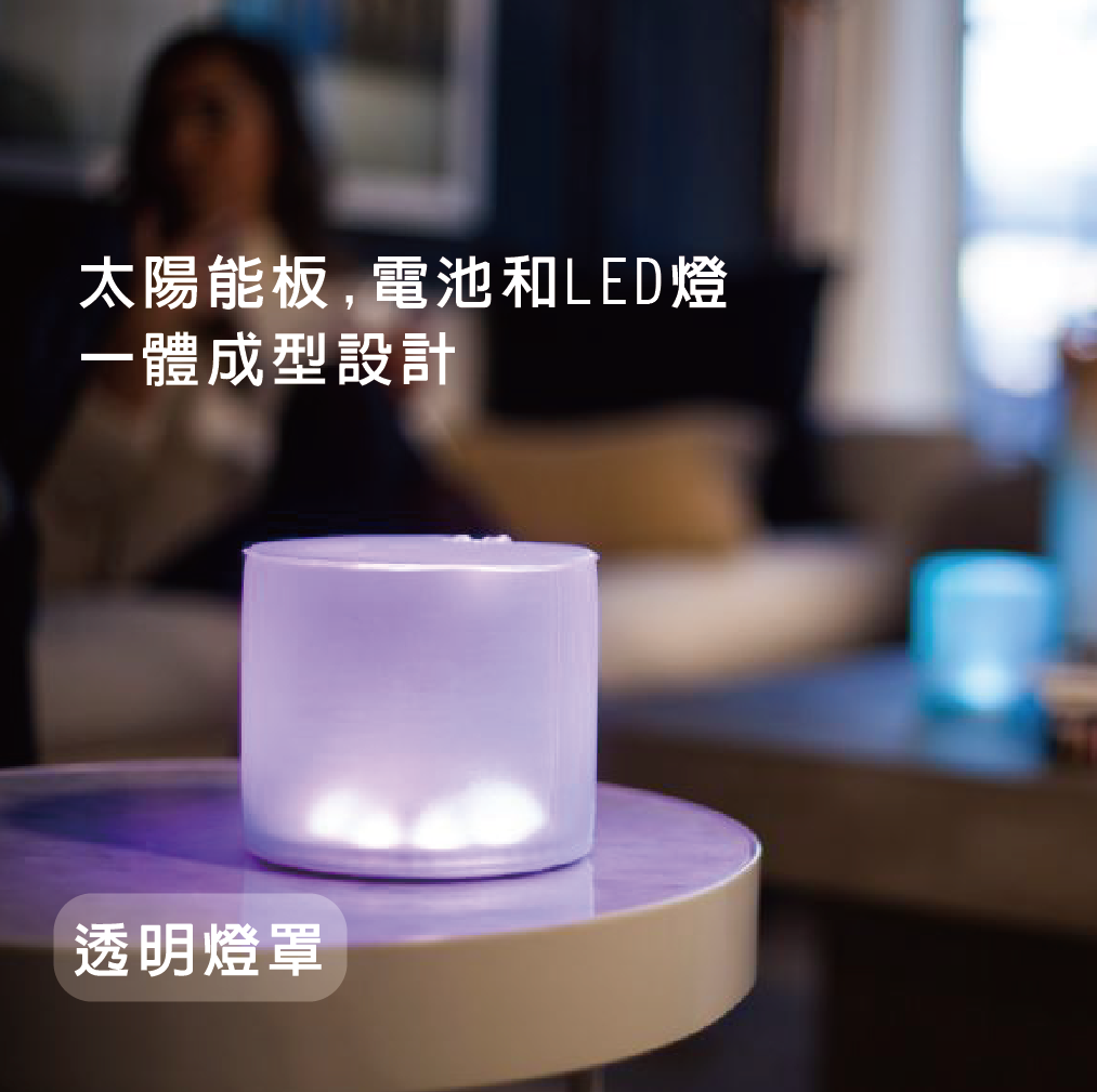 設計:重量113公克設定防水可達1公尺太陽能板,電池和LED燈一體成型九段式亮燈:每按一下固定一色,按到第九下為循環變色可折疊和擴張:13公分直徑,2.6公分收縮高度,11.5公分展開高度防水防塵等級IP67照射範圍14平方公尺10顆超亮LED燈充電:鋰電池壽命300~500次(日常使用2年以上)防過度充電保護裝置防過電流,防短路保護裝置使用一般燈可持續12小時亮燈(需在太陽光下充滿8小時)可在太陽光和燈泡下充電(建議陽光直射為佳)尺寸:充氣展開-13.5CM(直徑)*12.5CM(高)壓縮收納-13.5CM* 2CM 包裝(1個)13.5* 2CM重量:200克包裝(單組含包裝)充電時間:8小時可充滿蓄電池,點亮時間:6〜12小時