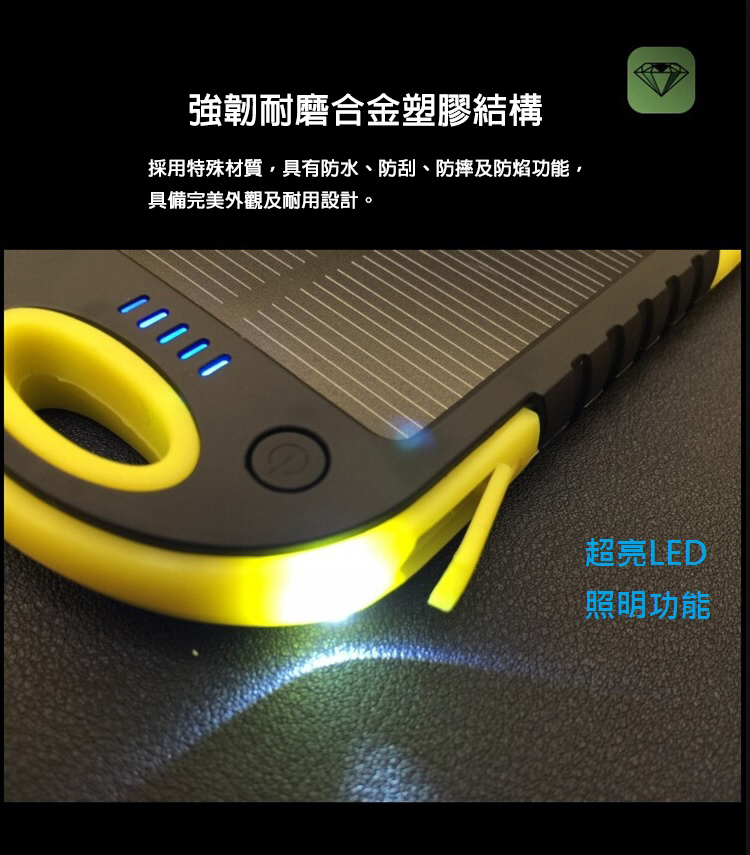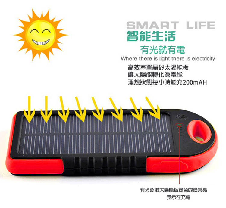 太陽能行動電源 太陽能充電器 AMAZEN 防水 5000mah LED燈
