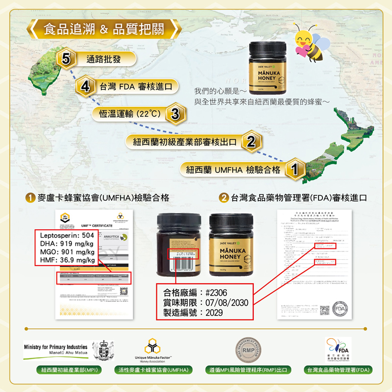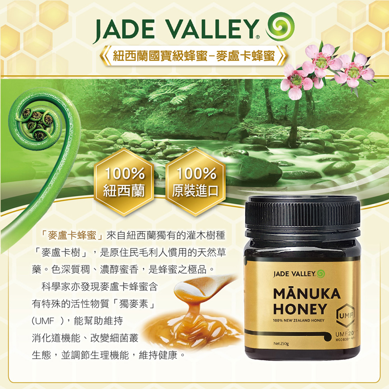 • 商品名稱 : 紐西蘭Jade Valley麥盧卡蜂蜜UMF20+(250g)