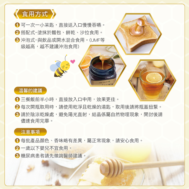 3 沖泡式 - 與飲品或開水混合食用 (UMF等級越高, 越不建議沖泡食用)