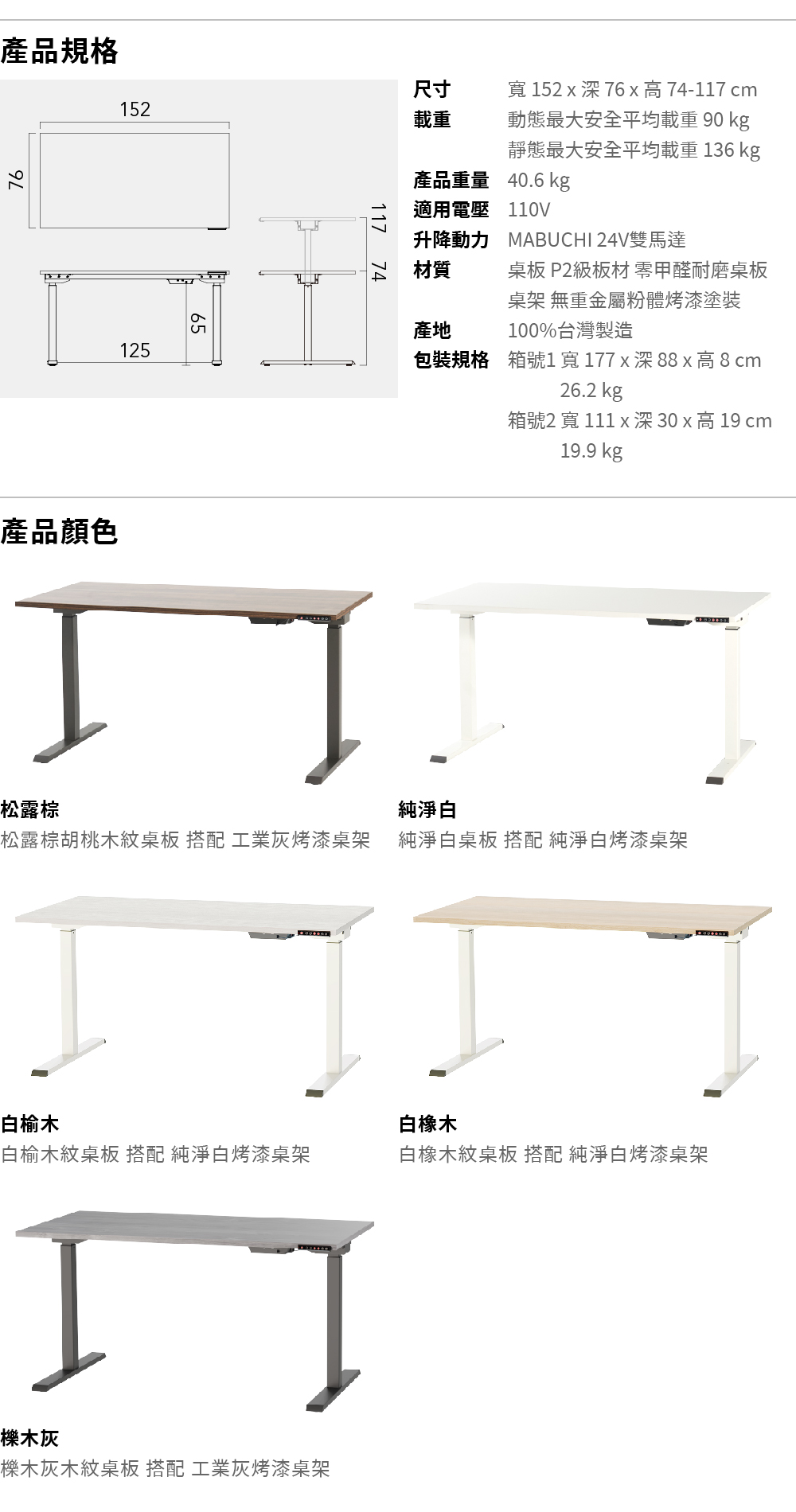 [KAKU] Electric Height Adjustable Desk 152x76cm