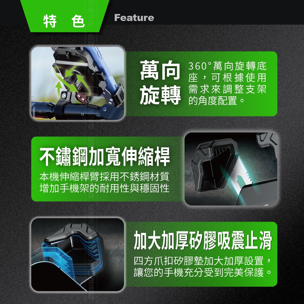 👍可搭配不同配件安裝在後視鏡、龍頭車把。
