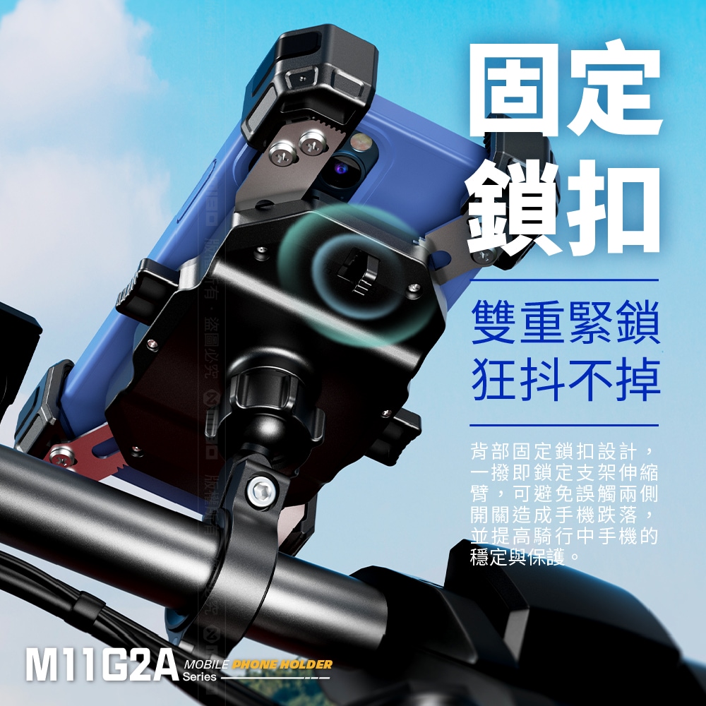 👍支架背面安全鎖定旋鈕,旋緊即可防止支架彈開,即使在顛簸的道路上高速行駛,也能確保手機不掉落。