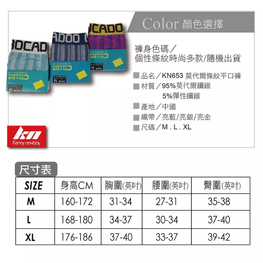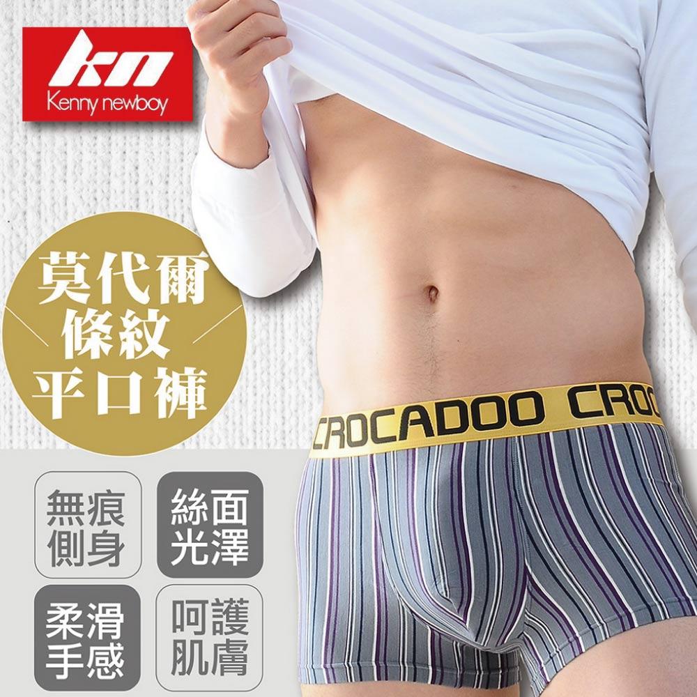 【KN】莫代爾條紋貼身男平口內褲.四角褲KN653