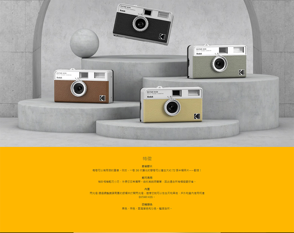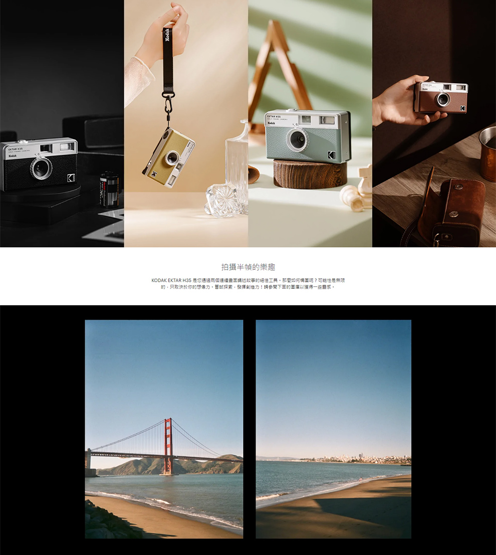 機身輕巧,方便攜帶支援135規格所有底片彩色、黑色底片任你拍手動過片、回捲,復古感十足內置閃光燈,白天晚上皆可拍一捲36張底片可拍攝72張照片