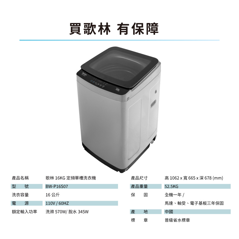 Kolin 16kg Single-Drum Full-Automatic Top-Loading Washing Machine BW-P16S07