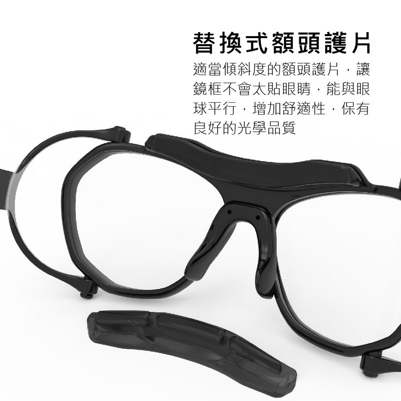 可裝配度數鏡片可戴在軍警空氣呼吸器面罩/防毒/漆彈面罩/雪鏡/安全帽/防護面罩密合性高,不易滑落側扣易拆,可以更換不同材質的織帶所有的配件都可以輕易拆下,更換新的