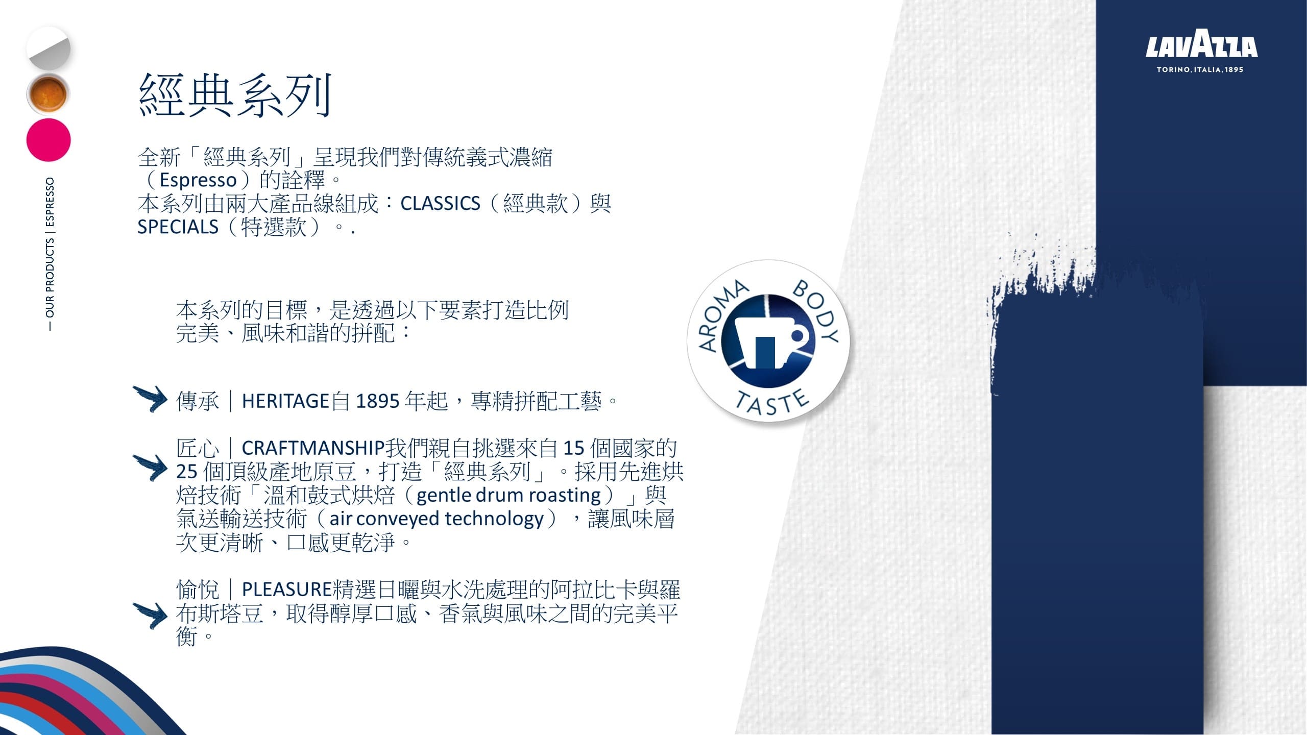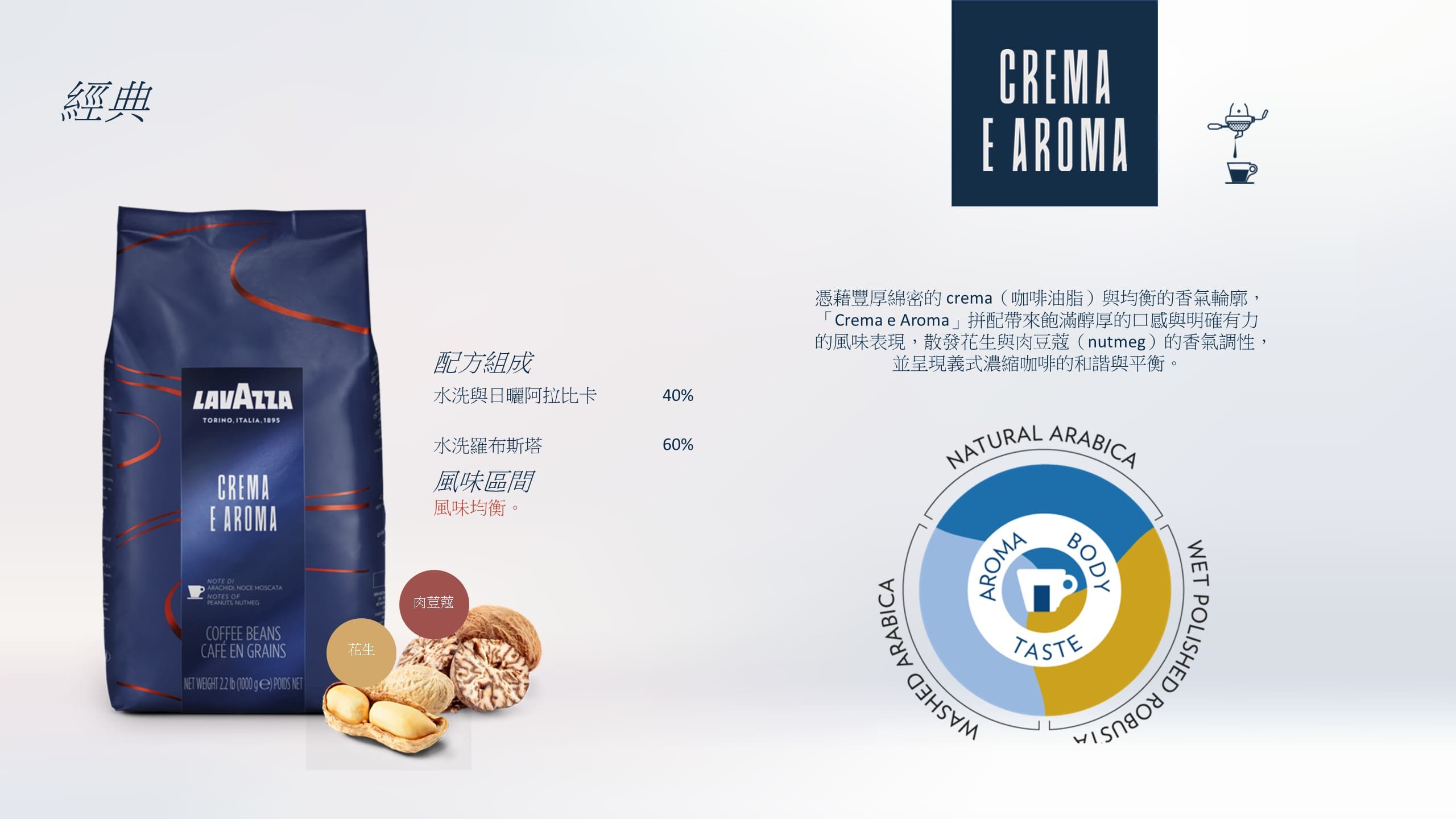 • 義式經典烘焙哲學:保留香氣深度,同時維持優雅節制,無論黑咖啡或加奶都成立。