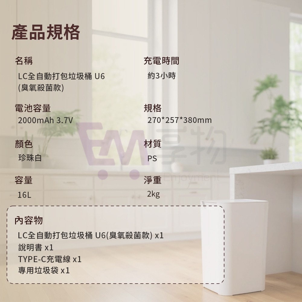 內容物:主機x1、專用垃圾袋盒x1、電源線x1、說明書x1