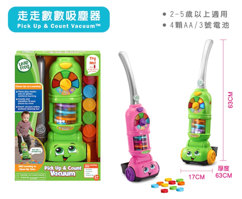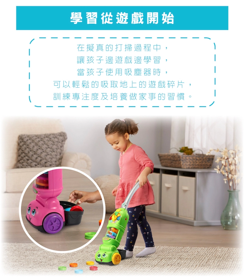 官方直營【LeapFrog】走走數數吸塵器-粉色