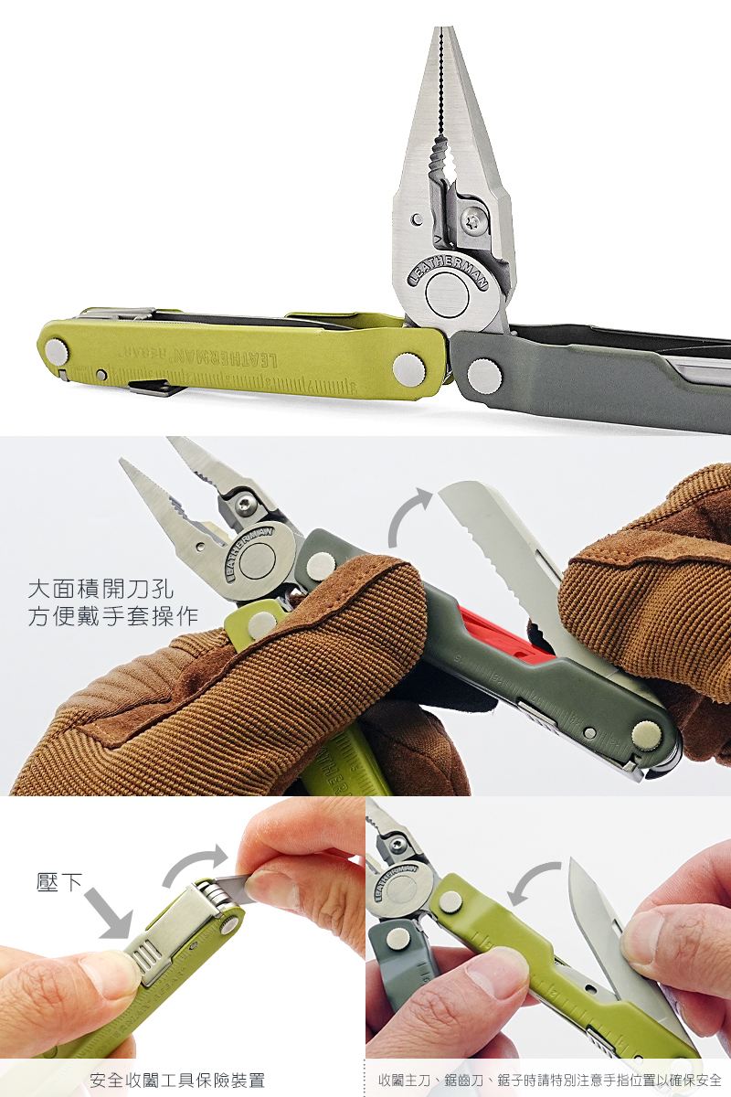 特點:》握柄採用Cerakote 塗層,可抵抗磨損和腐蝕》全工具皆可鎖定(鉗頭除外)》繫繩環
