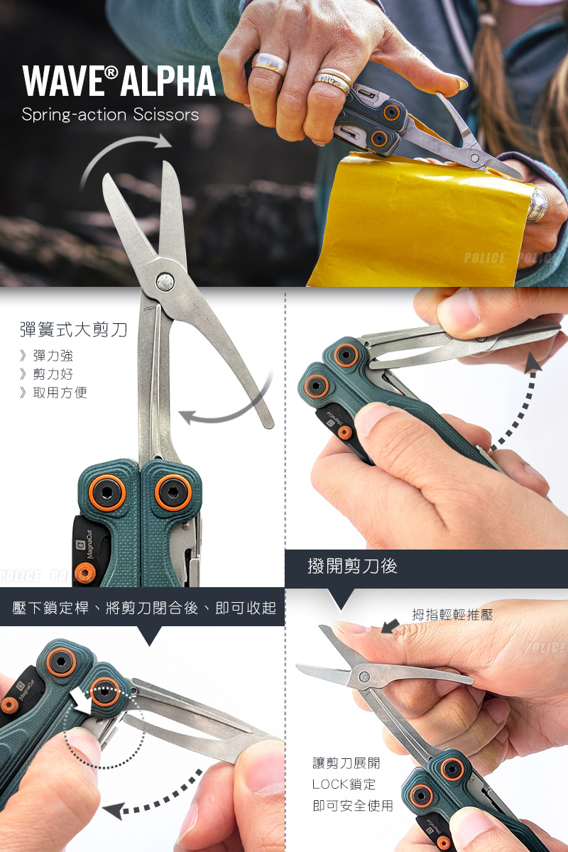 品名:LEATHERMAN Wave Alpha工具鉗_無附收納套/配件(卡司卡地亞綠 )型號/顏色:#833401 / 卡司卡地亞綠尺寸(±10%):合起時全長10.26cm重量(±10%):234g主刀鋼材:黑色氧化 MagnaCut® 不鏽鋼握 材:深綠色G10墊 圈:夕陽色 Cerokote 塗層不鏽鋼拇 指 柱:夕陽色 Cerokote 塗層不鏽鋼