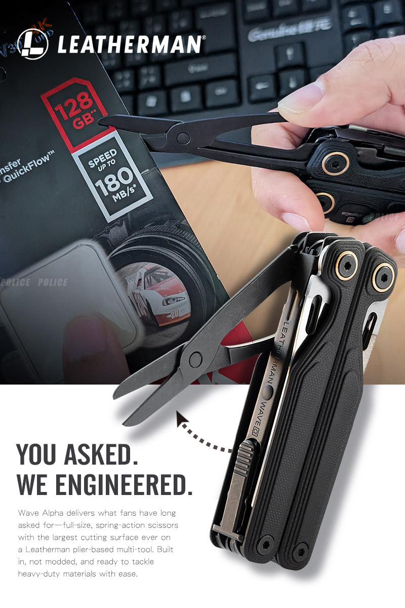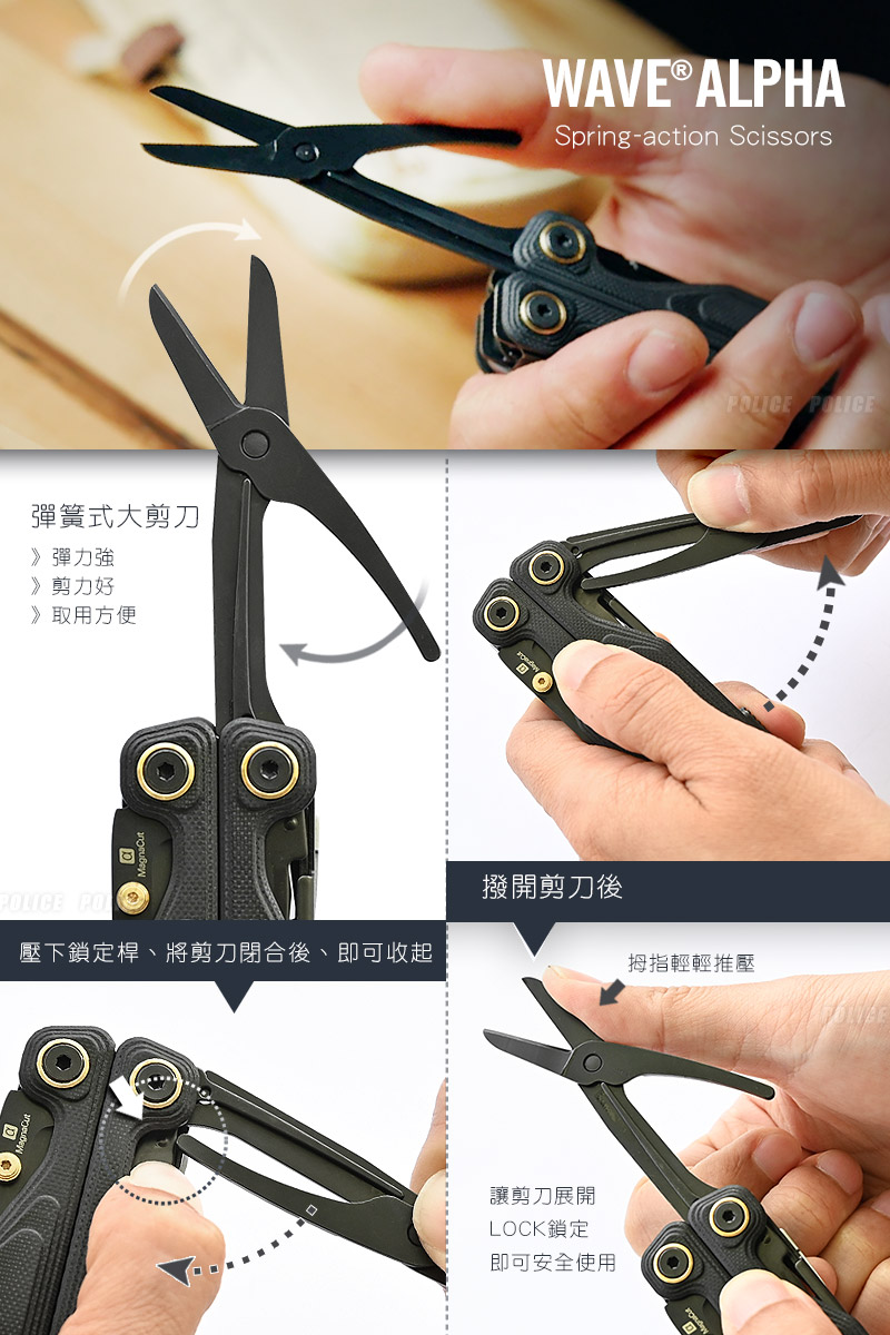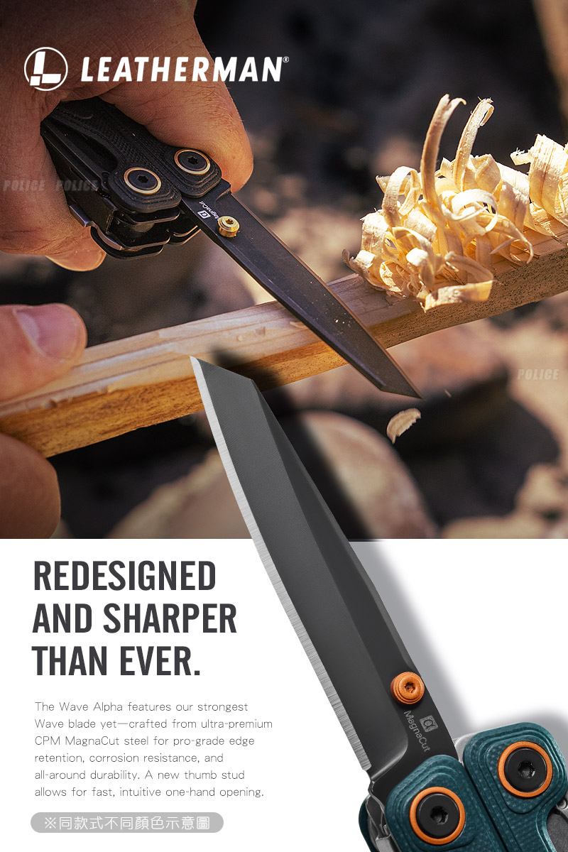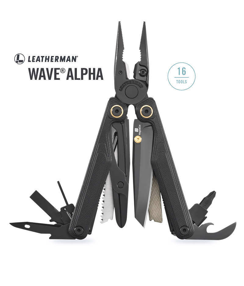 品名:LEATHERMAN Wave Alpha工具鉗_無附收納套/配件(黑曜石)型號/顏色:#833334 / 黑曜石尺寸(±10%):合起時全長10.26cm重量(±10%):234g主刀鋼材:黑色氧化 MagnaCut® 不鏽鋼握 材:黑 G10墊 圈:黃銅拇 指 柱:金色 Cerokote 塗層不鏽鋼