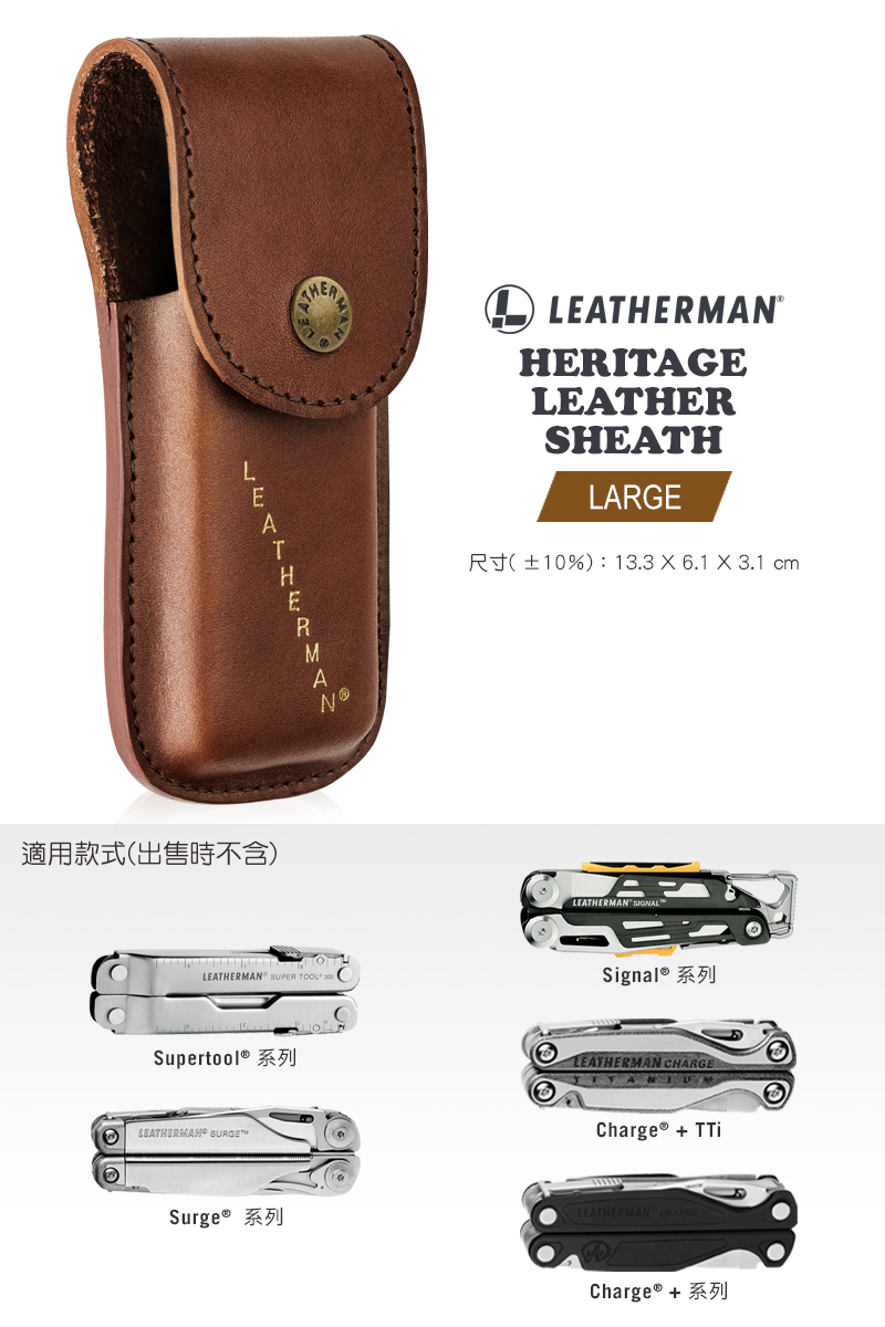 ※本產品說明,僅供參考,請勿作為正式採購招標規格,如有需要,請來電本公司洽詢相關業務人員。※以下原廠提供參考數據。品名:LEATHERMAN 傳承系列棕色皮套(大)型號:#832595(L)材質:皮革尺寸(±10%):13.3 x 6.1 x 3.1 cm重量(±10%):35 g適用於Charg+系列、Charg+TTi、Supertool系列、Surge系列、Signal系列