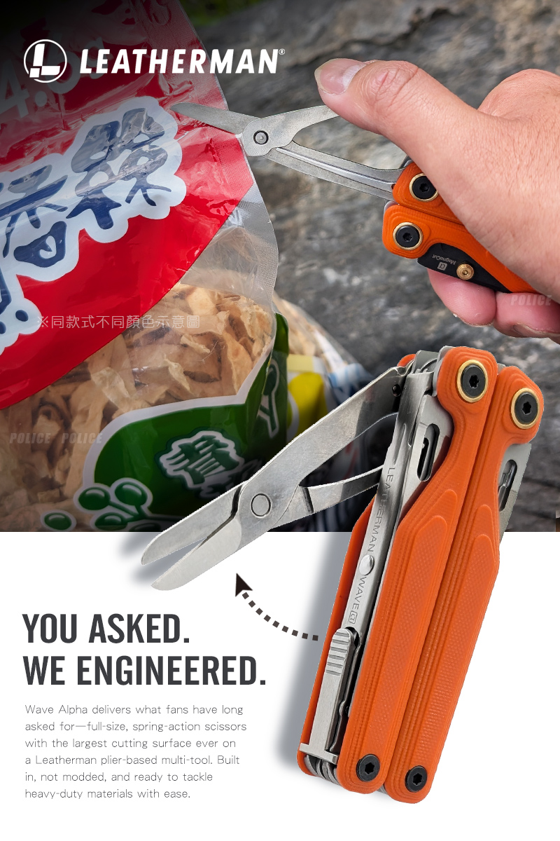 品名:LEATHERMAN Wave Alpha工具鉗_無附收納套/配件(峽谷橘)型號/顏色:#833338 / 峽谷橘尺寸(±10%):合起時全長10.26cm重量(±10%):234g