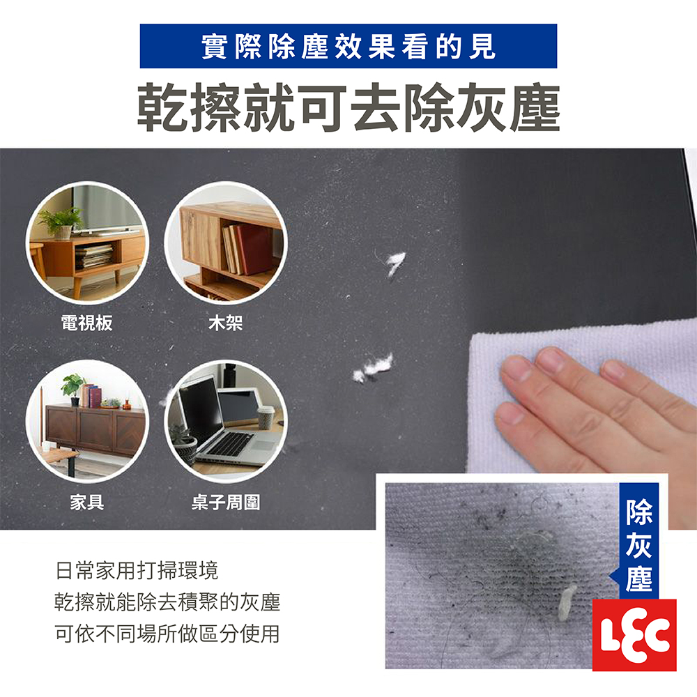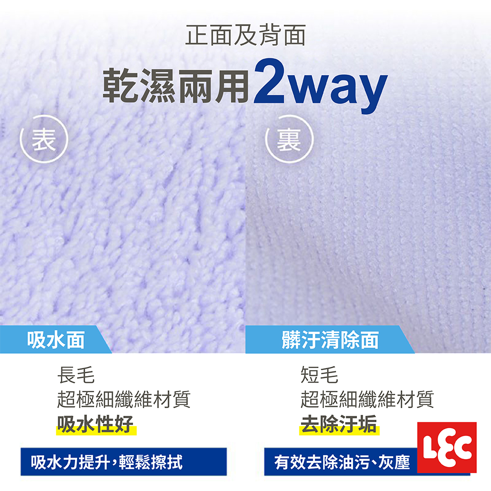採用超極細纖維材質,不用洗劑也能去污!乾濕兩用,吸水及吸油性佳,有效去除油污、灰塵、水滴等髒污。