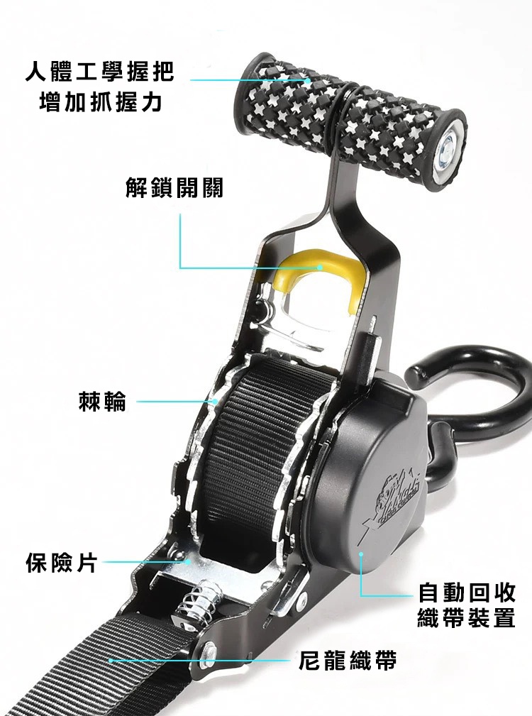 收縮織帶時請注意安全,織帶甩動可能有受傷的風險