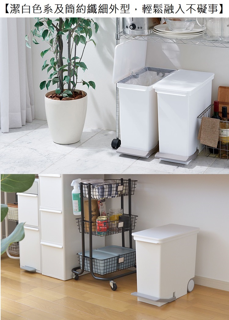 日本Like-it|直立式分類垃圾桶 25L-純白色 廚房 臥室 客廳 踩踏垃圾桶 分類垃圾桶 日本製造