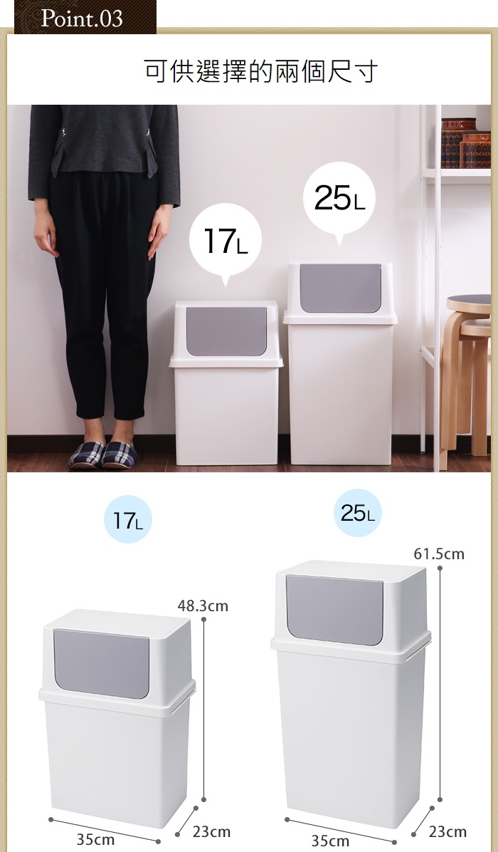 商品規格容量 : 25公升 尺寸 : 35 × 23 × 高61.5 CM重量 : 1.62 KG產地 : 日本材質 : 聚丙烯、ABS樹脂