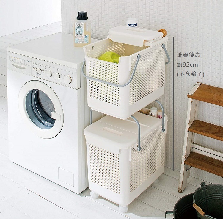 日本Like-it|可堆疊含蓋多功能收納洗衣籃(單入)