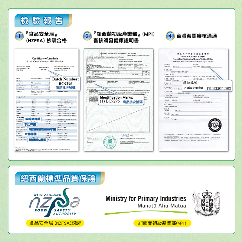 #高鈣#鋅#全脂奶粉#成人奶粉【紐西蘭Lin’s Care】 牛初乳奶粉 ✔ 精選48~72小時內的黃金乳汁✔ 富含多種維生素和礦物質✔ 奶味香醇濃厚,添加乳鈣和鋅• 商品名稱 :【紐西蘭Lin’s Care】 初乳奶粉• 成分內容 : 全脂奶粉, 牛初乳奶粉8.1% (含牛初乳免疫球蛋白及乳鐵蛋白), 葡萄糖酸鋅 • 內容規格 : 450g/罐• 保存期限 : 2年• 有效日期 : 如包裝上所示• 原產地(國) : 紐西蘭• 營養標示 : 如圖示※本產品含有牛奶及其製品,不適合其過敏體質者食用。• 食用方式 : 1. 將初乳奶粉與少量的水調勻成糊狀物, 然後逐漸加入適量的水, 慢慢的攪拌可以減少泡沫的產生 2. 常溫 或 50 度C以下溫開水沖食 3. 飯前半小時或空腹食用, 效果更佳 4. 建議食用量 - 1 歲至 3 歲: 每次食用 0.5至 1 匙- 3 歲至 8 歲: 每次食用 2 至 3 匙- 8 歲至18歲: 每次食用 2 至 4 匙成年人: 每次食用 3至5 匙※一匙 5公克 , 一平匙 30 cc至40 cc水5. 添加式飲用 : 可加入牛奶、沖泡式飲料、料理中 • 注意事項 : 1 營養補充食品, 不作為主食 2 三歲以下的嬰兒請勿取代嬰兒配方奶, 並參考 “建議食用量” 酌量食用 3 糖尿病患者請先徵詢醫師建議 4 孕婦後期(8-10個月)才使用 若有疑問, 請徵詢醫師或來電洽詢 • 保存方式: 為確保奶粉的最優良品質, 建議您於開封後將罐蓋蓋緊, 儲存於陰涼乾燥處, 並於一個月內使用完畢 ■ 廠商名稱 : 好健康國際有限公司■ 廠商電話 : 02-26755234■ 廠商地址 : 238新北市樹林區千歲街57-7號1樓■ 投保產品責任險字號 : 1504 字第 11PD02948 號■ 食品業者登錄字號 : H-153997270-00000-7