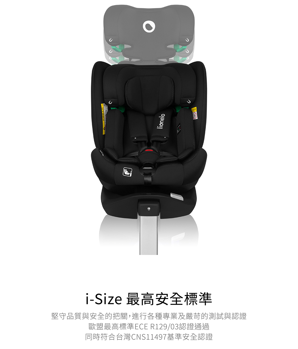 新生兒-12歲(體重36kg以下)後向模式(五點式安全帶):新生兒-4歲(參考身高40-105cm/體重18kg以下)前向模式(五點式安全帶):2-12歲(參考身高76-105cm/體重18kg以下)前向模式(車用安全帶):3-12歲(參考身高100-150cm/體重36kg以下)