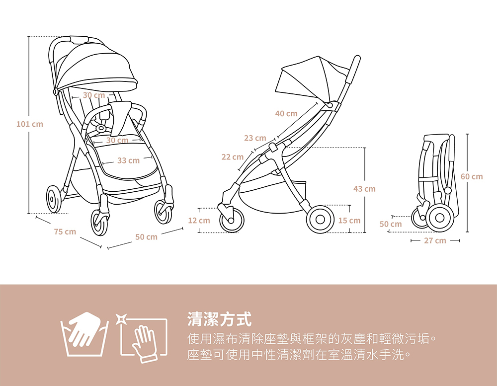 展開:W50 x D75 x H101cm摺疊:W50 x D27 x H60cm
