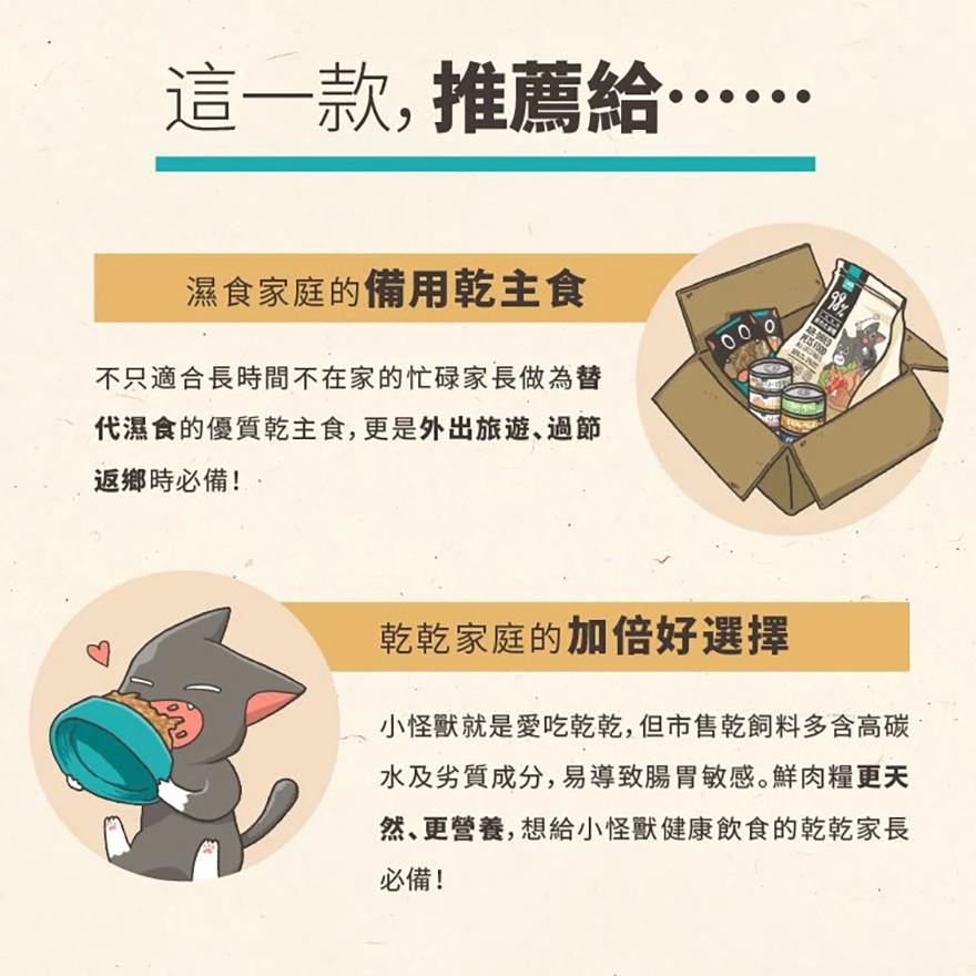 產品名稱:【怪獸部落】98%貓用鮮肉主食糧1.8kg口味:竹筴魚規格:1.8kg產 地:台灣