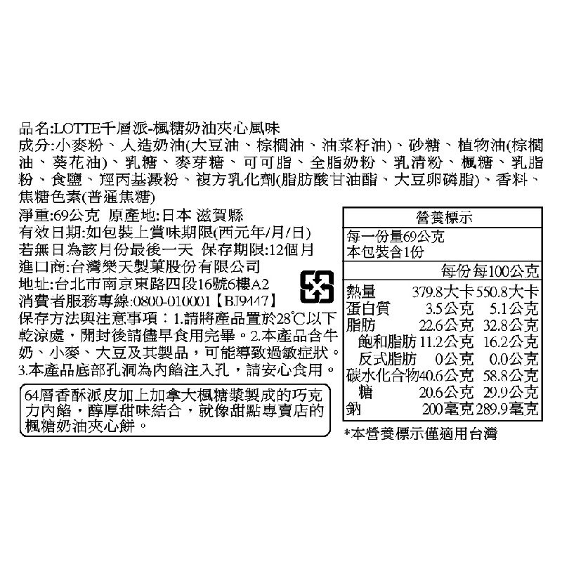 ◎Brand:LOTTE樂天 ◎Specifications: 69g克 x 1 x 1BOX盒