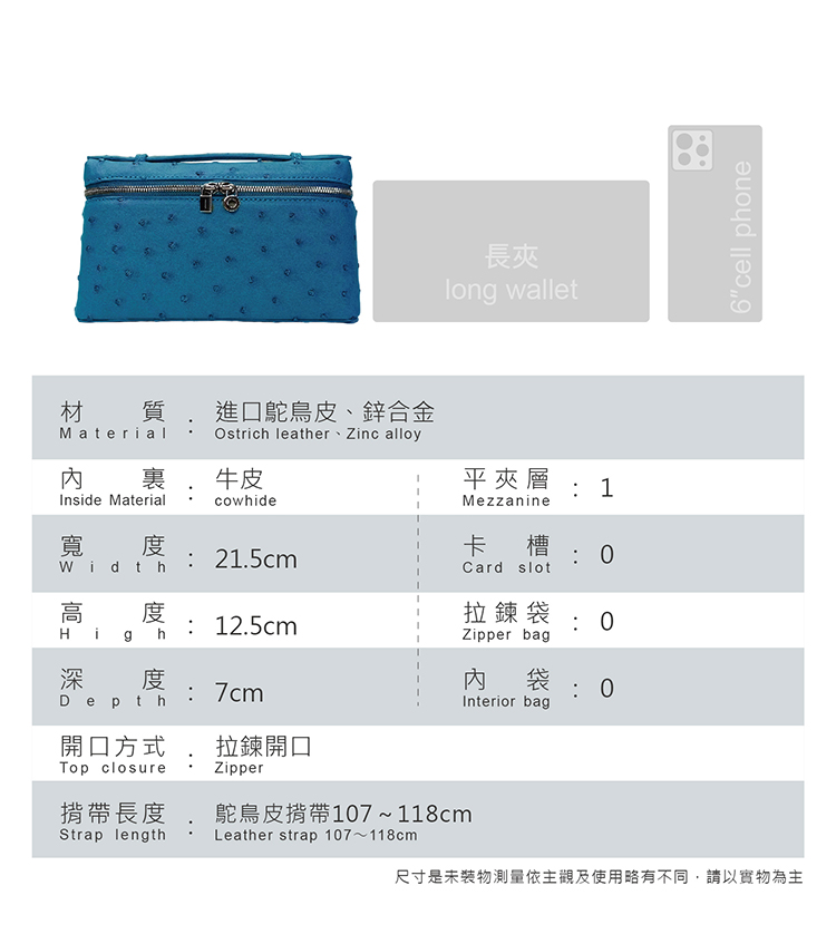 ※鴕鳥皮/鱷魚皮屬於天然珍稀皮革,每一只包都有獨特的天然動物紋路