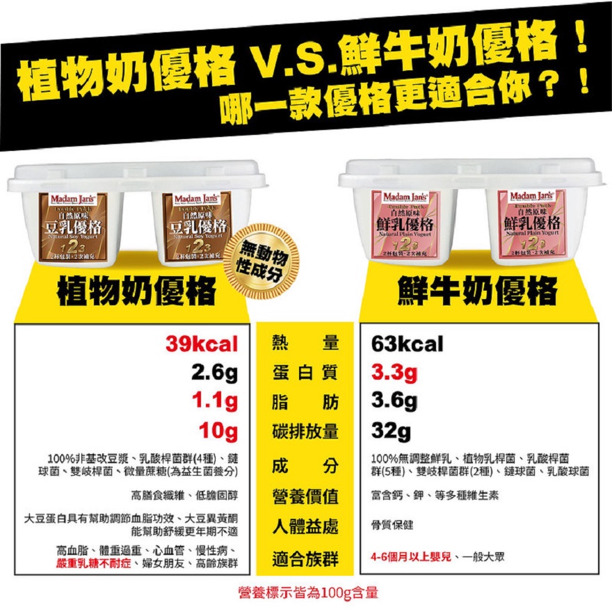 100%非基改豆漿製成,零乳糖、零膽固醇、零動物性成分,添加少許糖份作為活性乳酸菌的養分(鮮乳中有乳糖為其養分),特殊2道式工法製成綿密滑順、香濃馥郁的豆漿優格,富含大豆異黃酮,調節生理機能、促進新陳代謝。***本產品無添加防腐劑,開封後請盡快食用完畢。每次挖取請使用「乾燥潔淨湯匙」,請冷藏保存4~7 °C,並避免置於冰箱出風口,避免陽光直射及高溫潮濕處。******本產品符合通訊交易解除權合理例外情事適用準則第2條第一項:易於腐敗、保存期限較短或解約時即將逾期。不接受無故退貨,請消費者考慮清楚、看清楚再下單,謝謝!!***