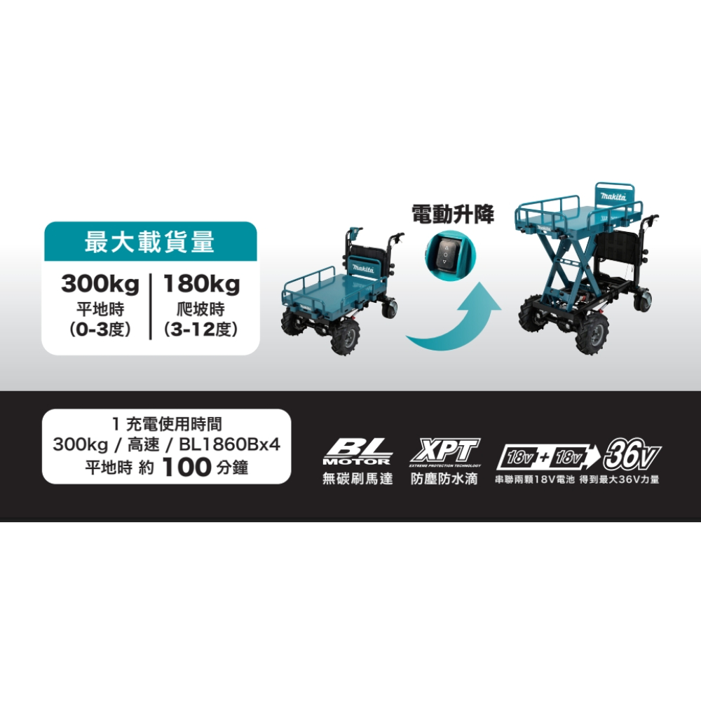 MAKITA牧田 DCU601Z 充電式無刷四輪搬運車 無電池 無充電器