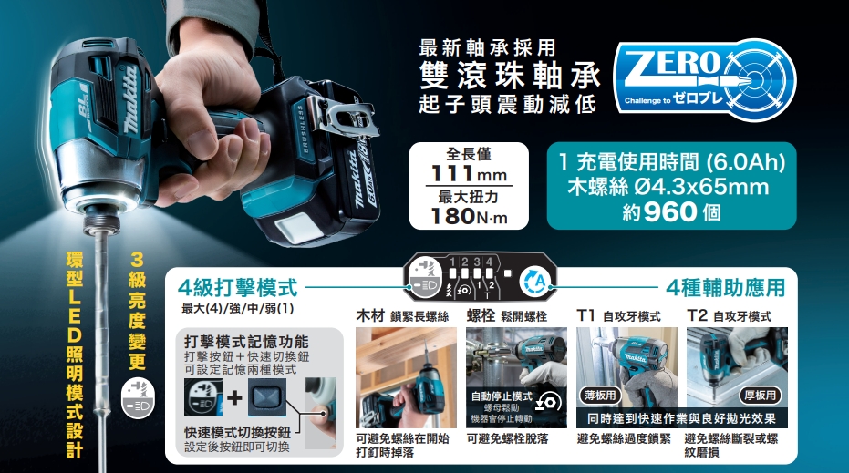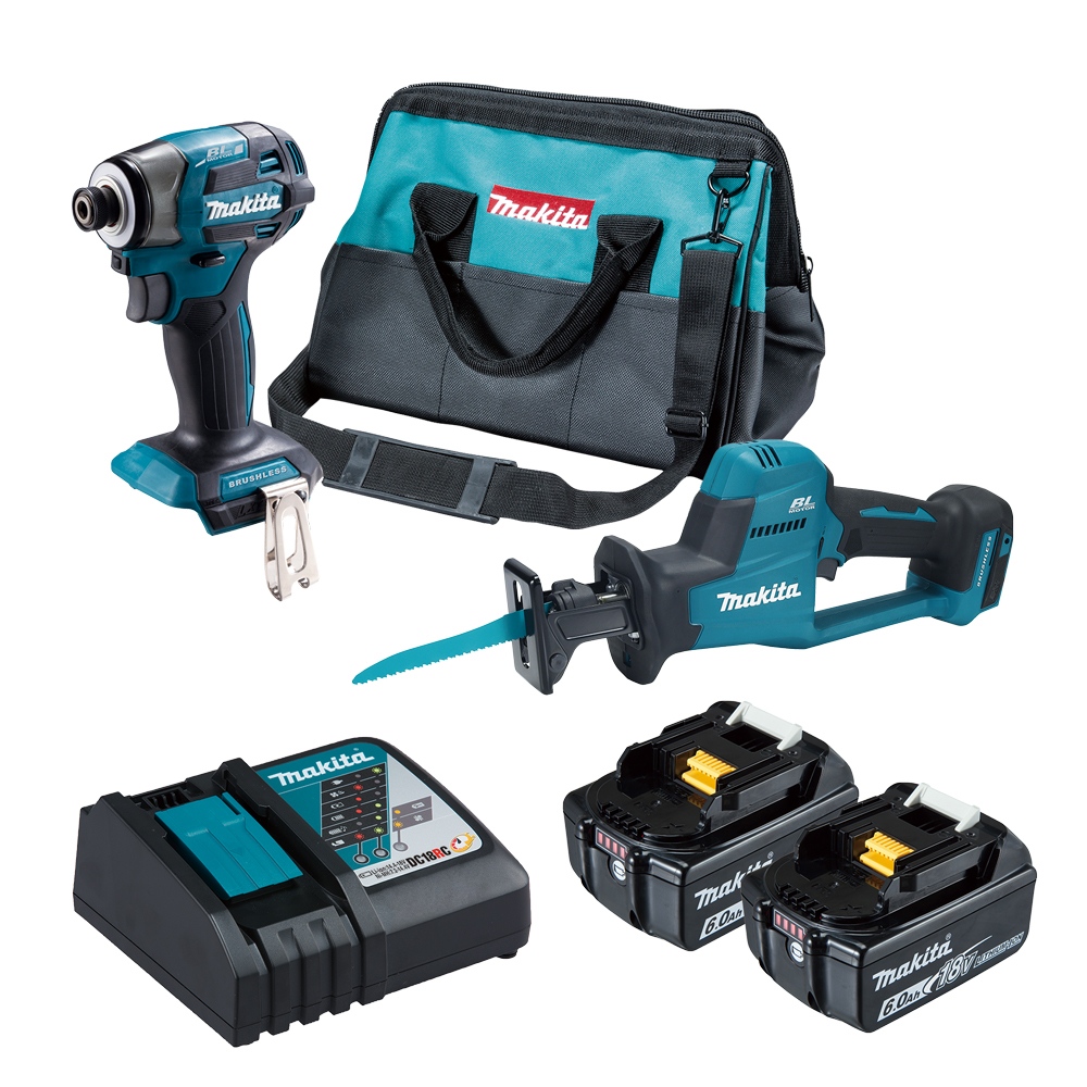 MAKITA牧田 DLX2525GX2 18V無刷雙機組DTD173+DJR189附件:DTD173*1、DJR189*1、BL1860B*2、DC18RC*1、工具袋*1