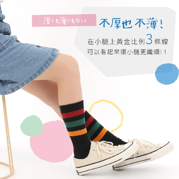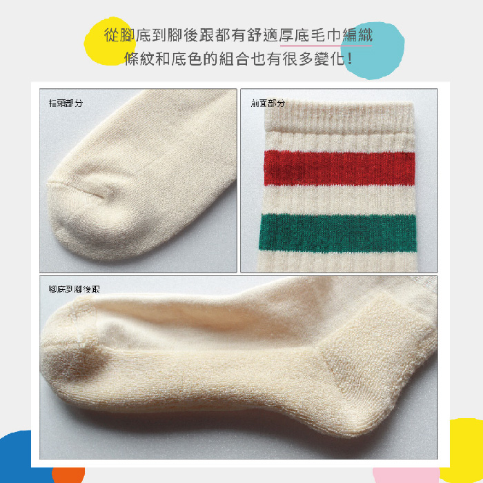【M&M 日本製】CS10 厚底毛巾彩色條紋襪 男女通用