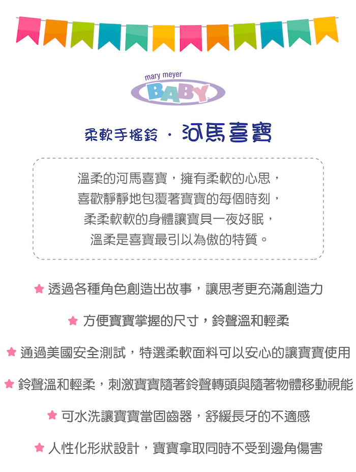 官方直營【MaryMeyer】柔軟手搖鈴-河馬喜寶