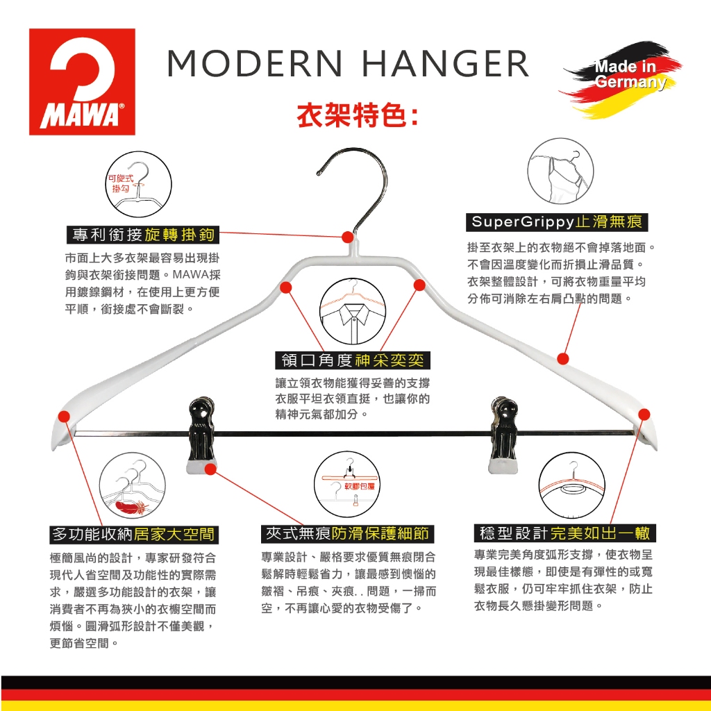 【德國MAWA】德國原裝進口 無痕止滑 專業時尚套裝衣架42cm 5入/白