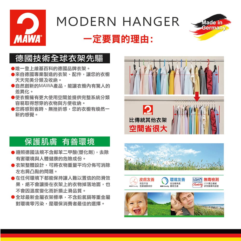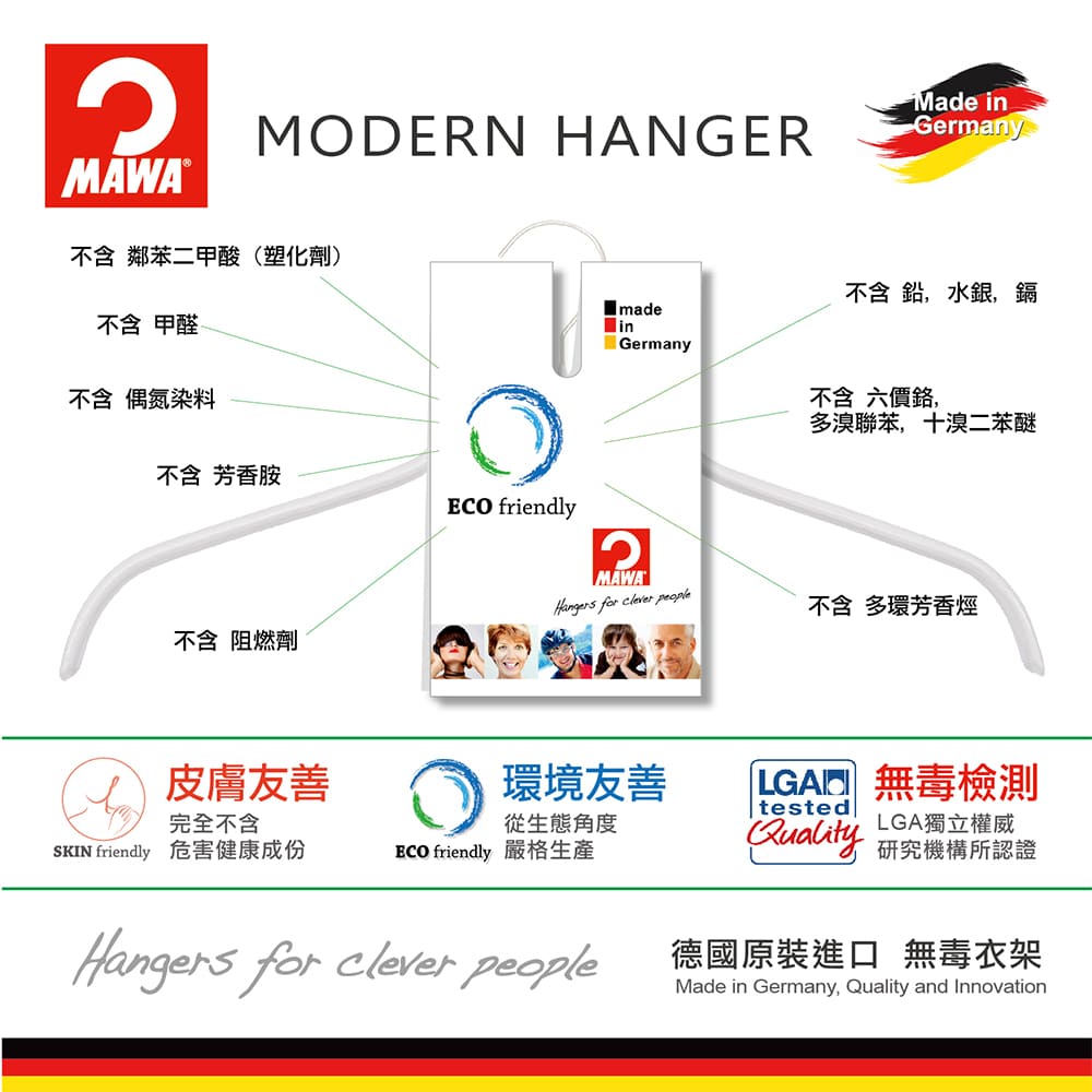 【德國MAWA】德國原裝進口 無痕止滑 專業套裝衣架42cm 10入/白