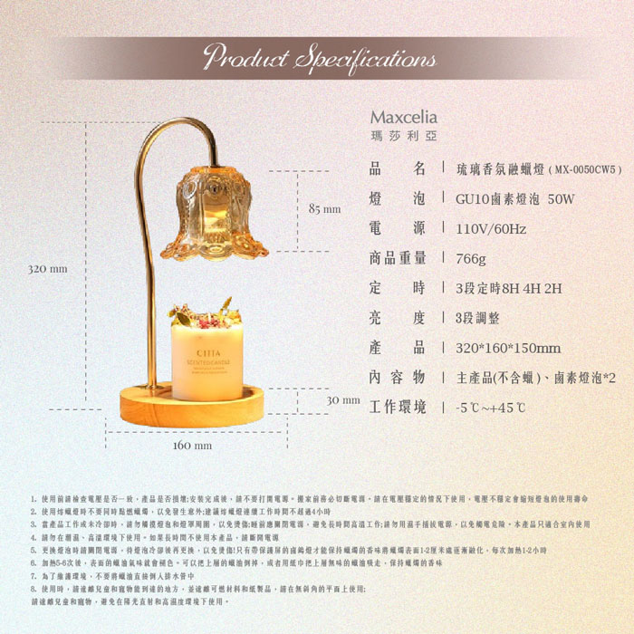 Maxcelia 瑪莎利亞|琉璃香氛融蠟燈|MX-0050CW5-福利品特賣