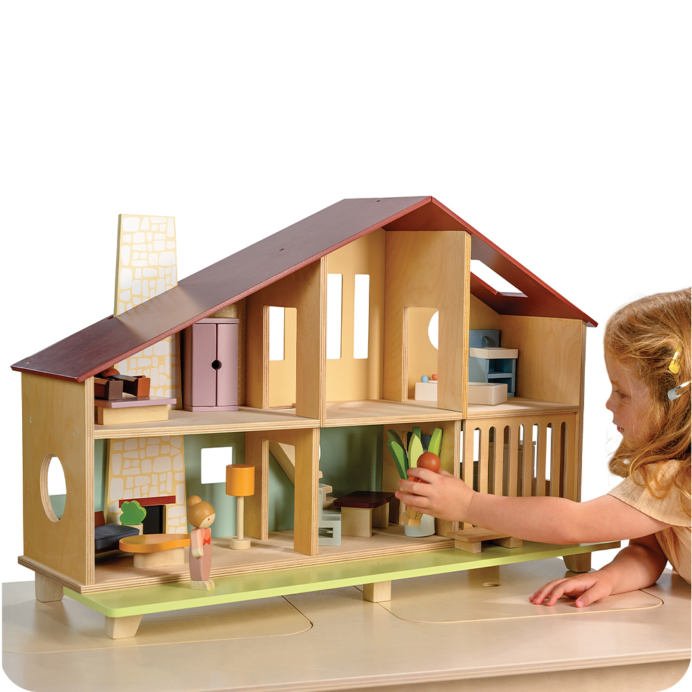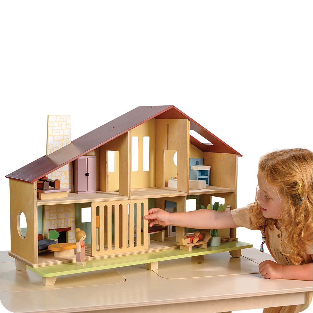 這座復古風格的雪松山林度假屋,以世紀中期現代主義設計風格,將人造結構與自然環境完美融合。屋裡的壁爐是以小卵石灰漿塗抹至屋頂的煙囪。一樓拉開滑門可以進入都市風格的草地,可以在那片草地曬日光浴或給植物澆水。度假屋有6個房間和一套現代主義的家具:炊具和冰箱、餐桌和2張椅子、浴室和洗手台、雙人床和衣櫃、五十年代風格沙發、檯燈和咖啡桌,草坪上還有盆栽植物和日光浴床。非常適合忙碌的大人和小孩入手的教玩具,抒發情緒壓力。