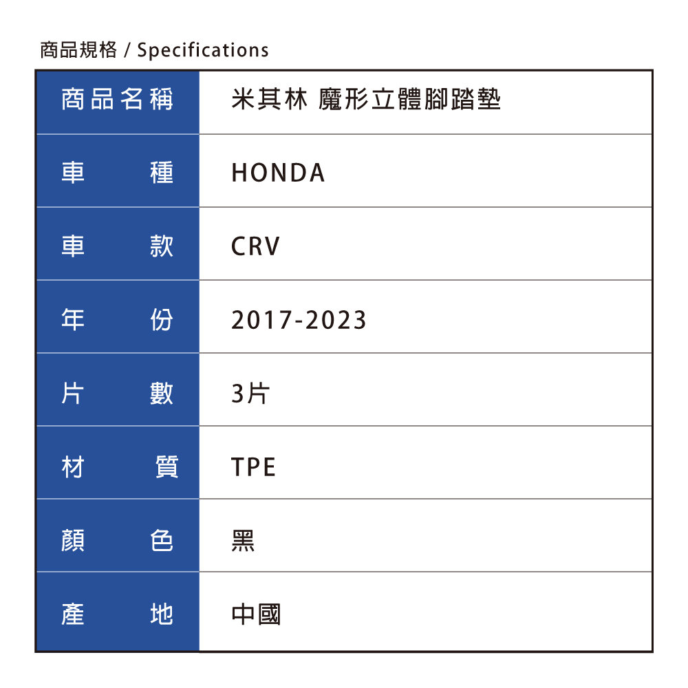 MICHELIN Honda CRV 2017-23 All-inclusive 3D Floor Mats